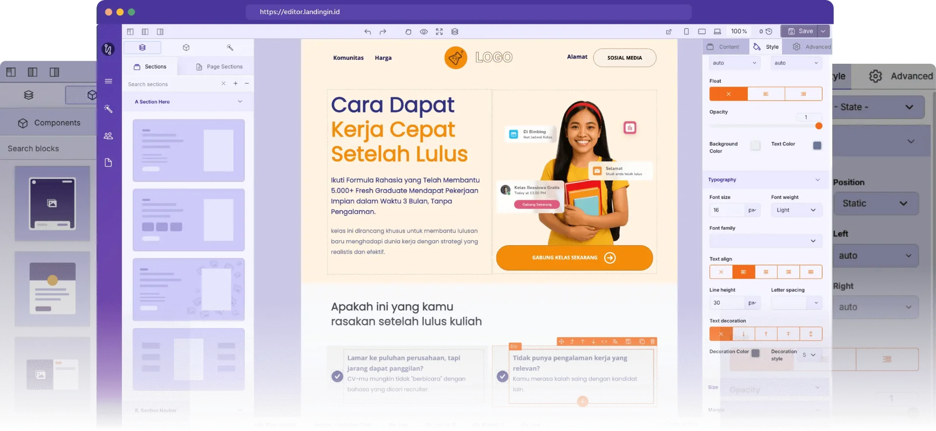 Bangun landing page seperti bermain lego. dilengkapi dengan beragam